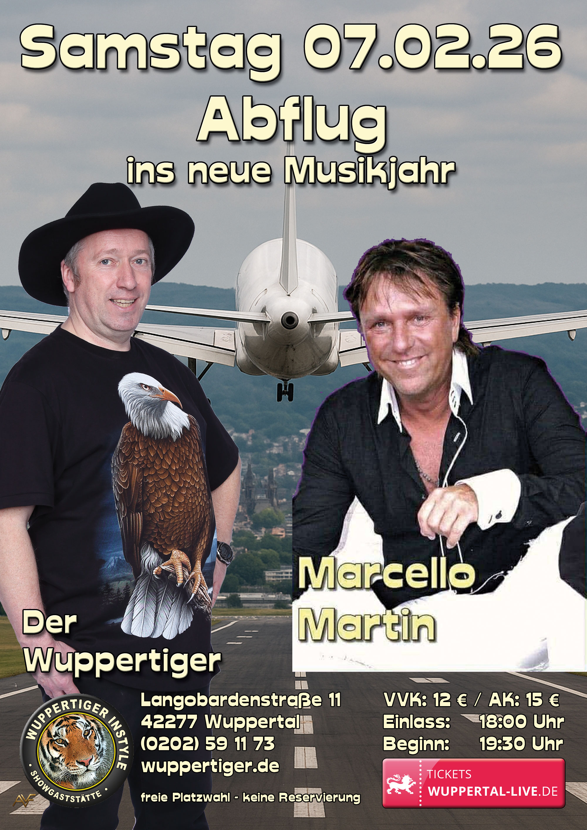 Marcello Martin und Der Wuppertiger beginnen das neue Jahr mit deutschen und internationalen Hits. Hier bleibt niemand sitzen - alle tanzen mit! Und von Marcellos Charme sind viele Frauen begeistert! |