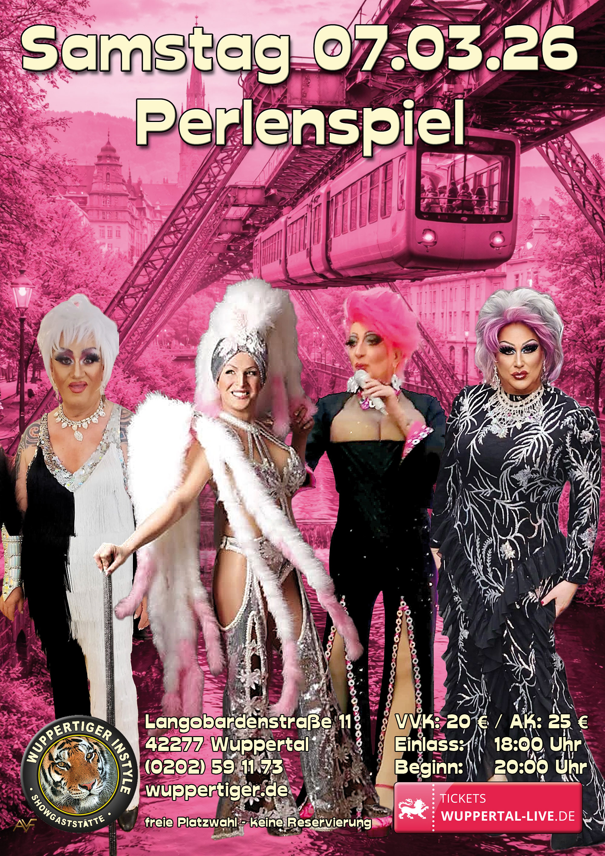 Perlenspiel zeigt uns "Perlen der Travestie". Gute Unterhaltung ist genau wie schillernde Kostüme und perfektes Make up garantiert.