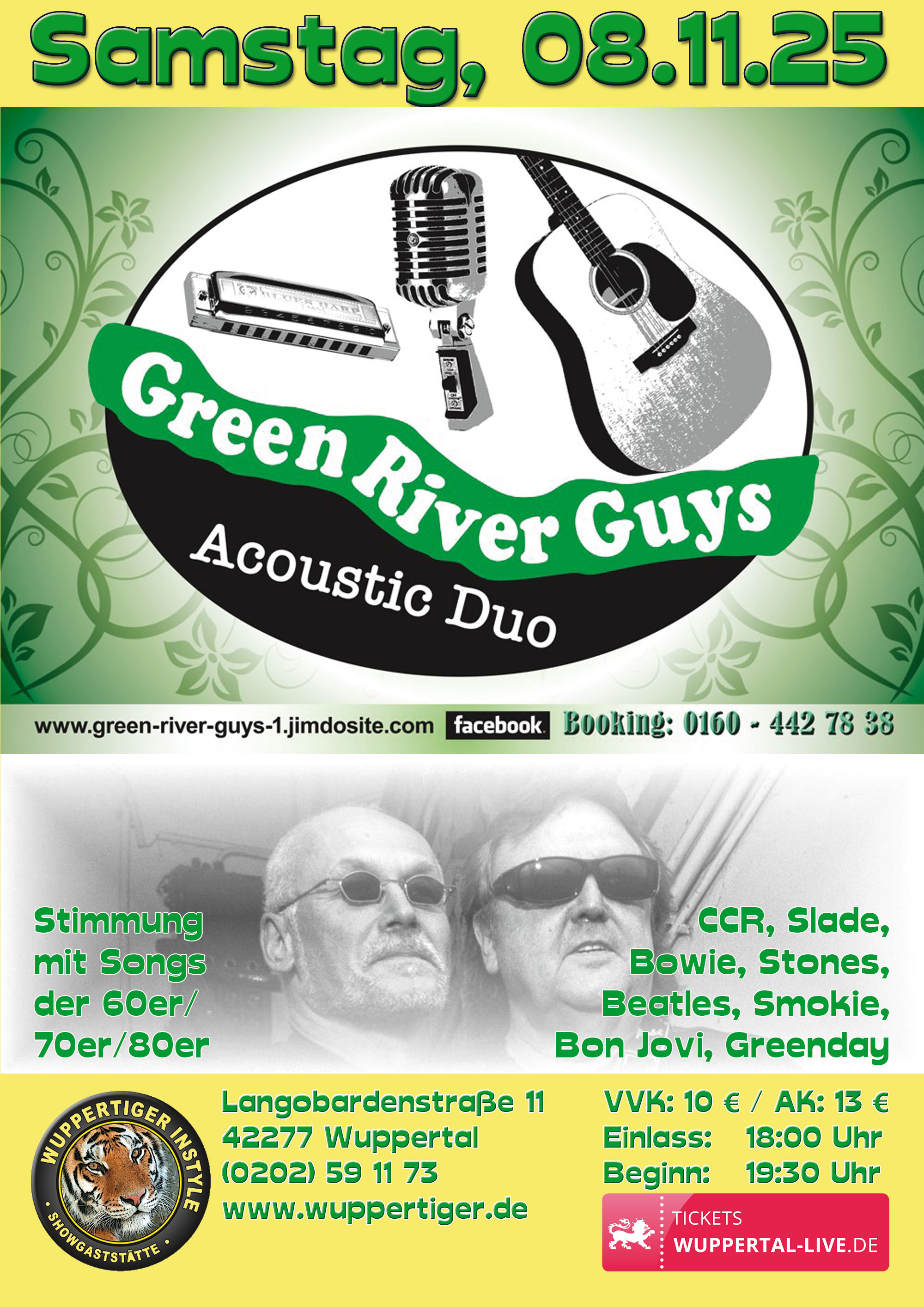 Die Green River Guys präsentieren Stimmung mit den Songs der 60er, 70er und 80er. Sie spielen Titel von CCR, Slade, Bowie, Stones, Beatles, Smokie, Bon Jovi, Greenday u.v.m. |