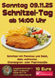 Superpreis-Aktion: Schnitzel mit Pommes und Salat, dazu wahlweise Champignon- oder Paprikasoße. |