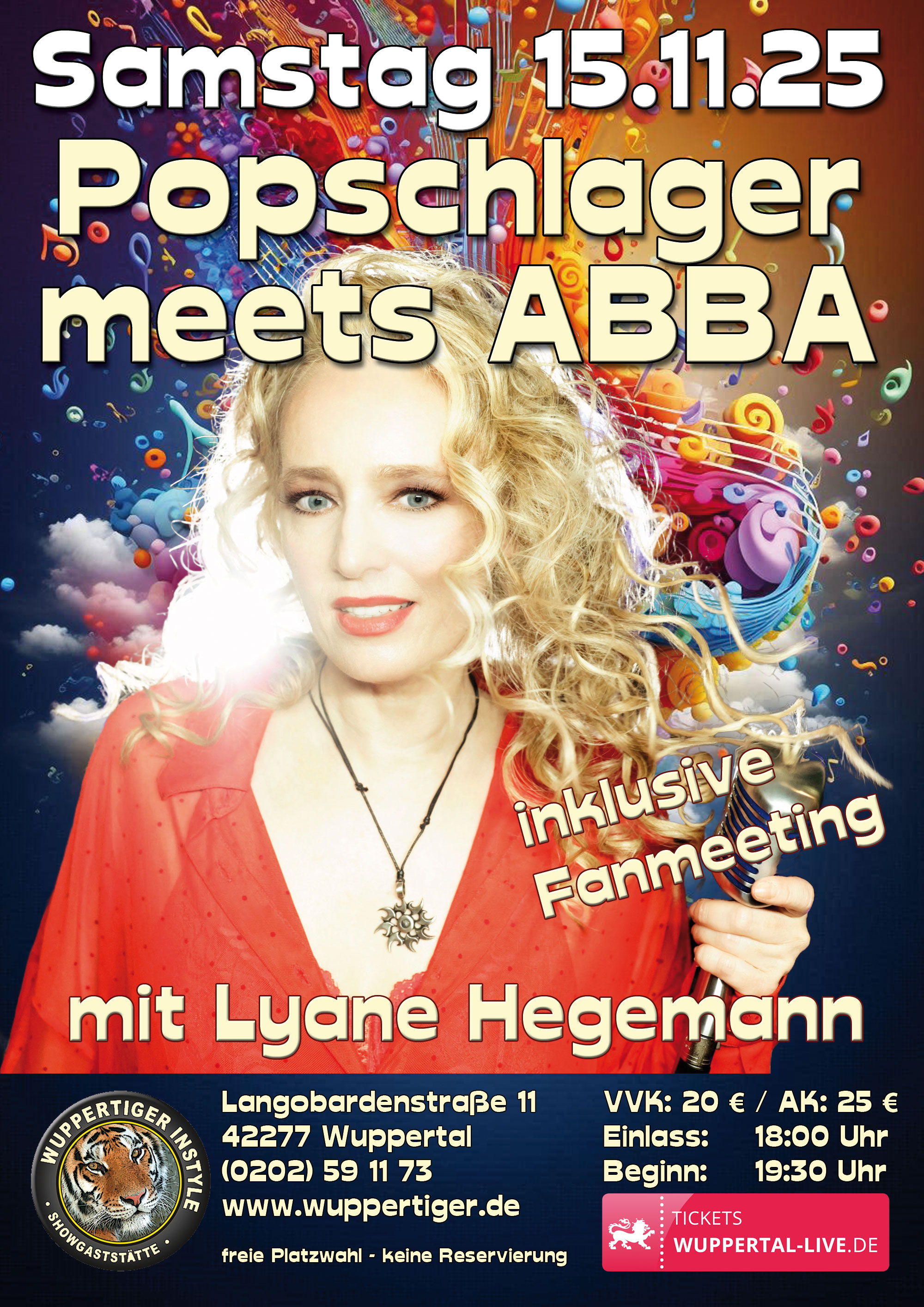 Erlebt Lyane Hegemann live: Ein spektakulärer Abend mit der Stimme der Band E-Rotic und der Schlagerformation Xanadu! Besonderes Highlight: Ein mitreißendes ABBA-Set, das die Nostalgie der legendären Band aufleben lässt! Und ein persönliches Treffen im Anschluss an die Show mit Fotos und Plaudern rundet diesen fantastischen Abend ab!