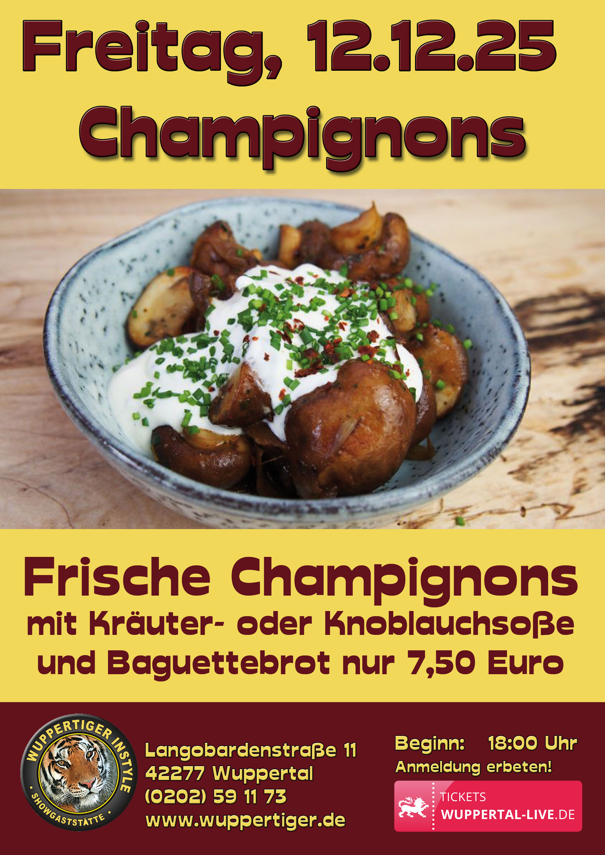 Frische Champignons, wahlweise mit Kräuter- oder Knoblauchsoße, dazu ein Baguettebrot - und das für günstige 7,50 €. Guten Appetit! |