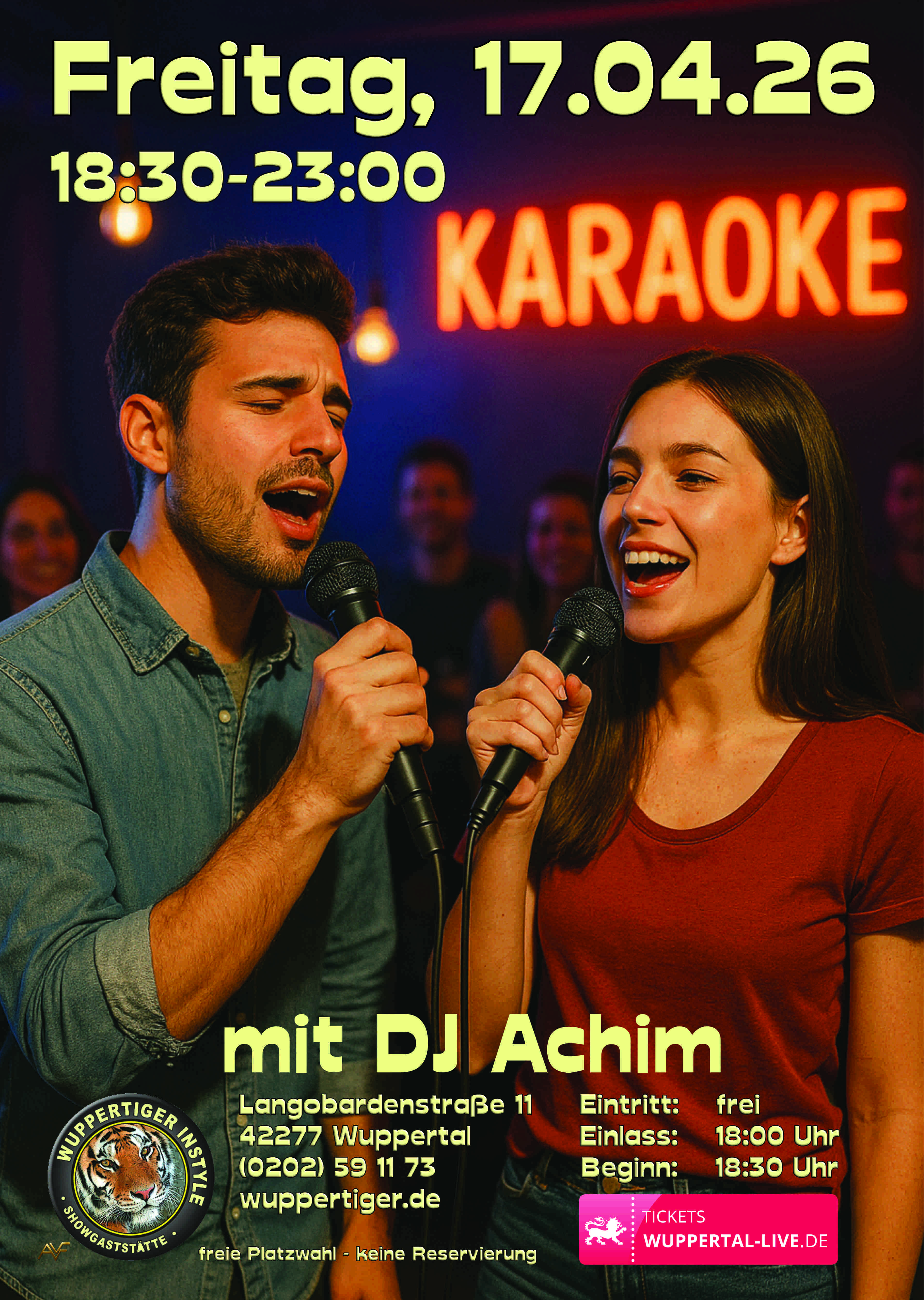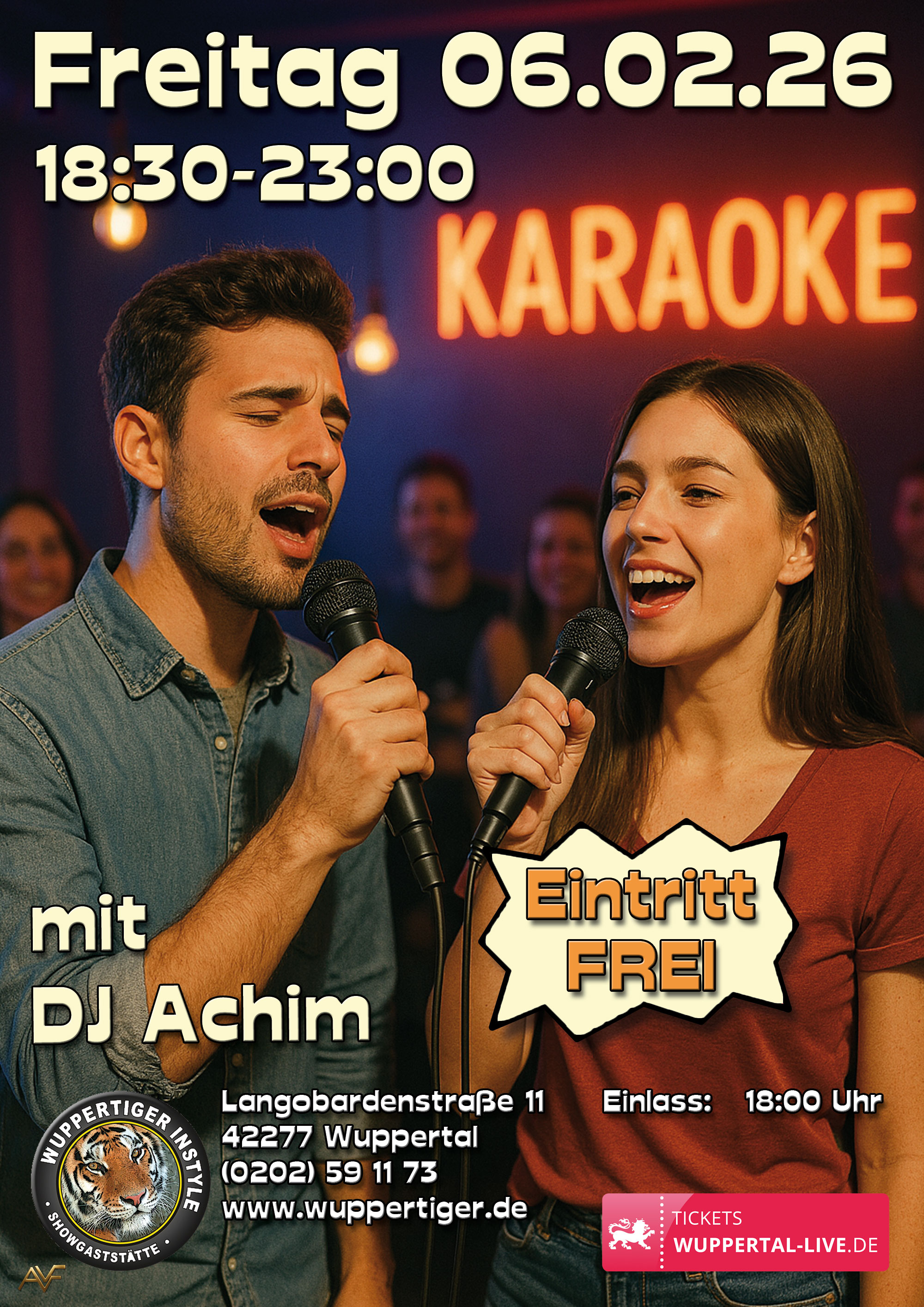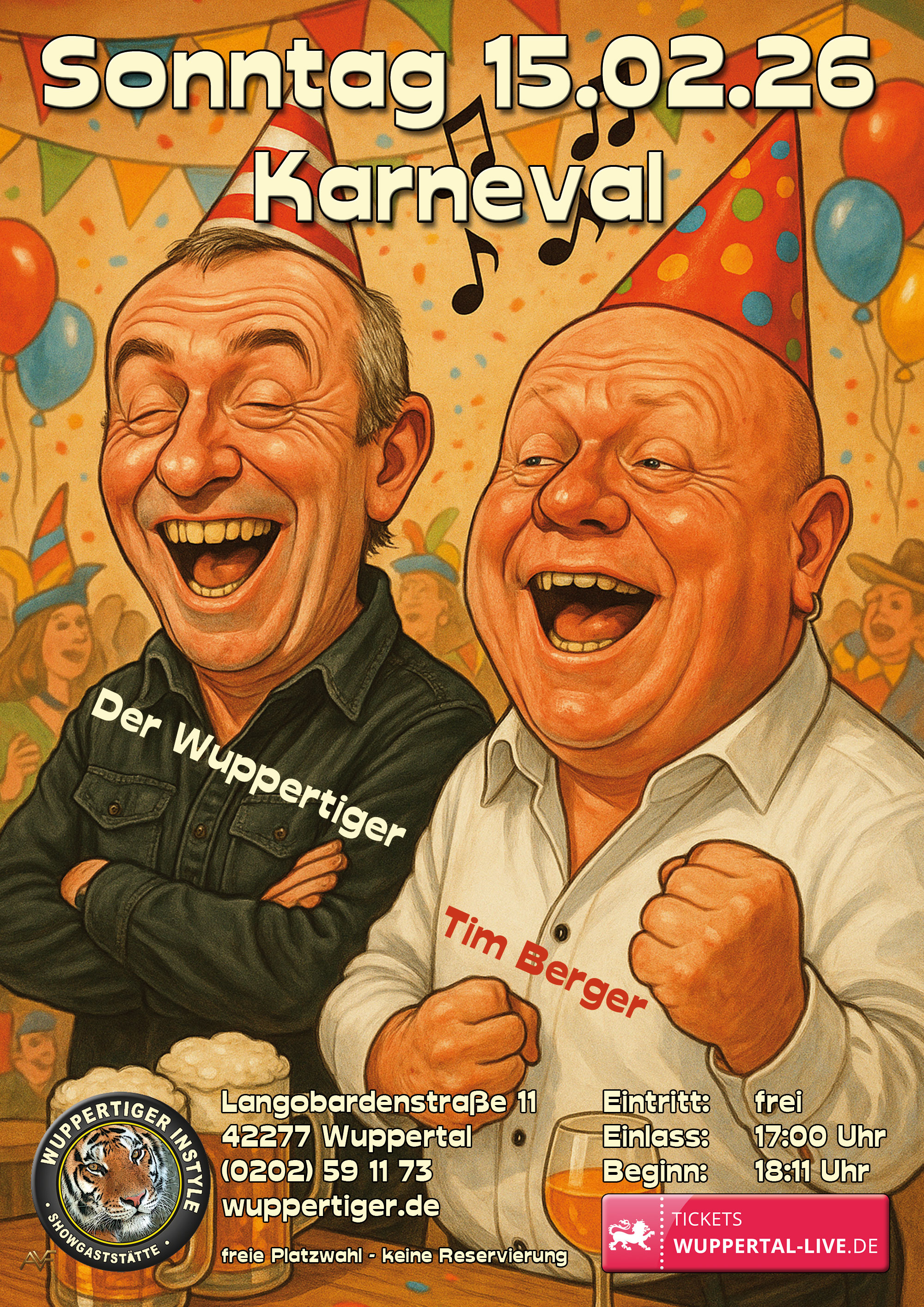Steven Heart und Der Wuppertiger machen Stimmung. Machen Sie mit? Karneval und Schlager, Hits und Schunkellieder - die richtige Musik zum Tanzen und feiern. Ob Bier oder Cocktail - die Getränke- und Speisekarte bieten alles wie gewohnt zu günstigen Preisen! |