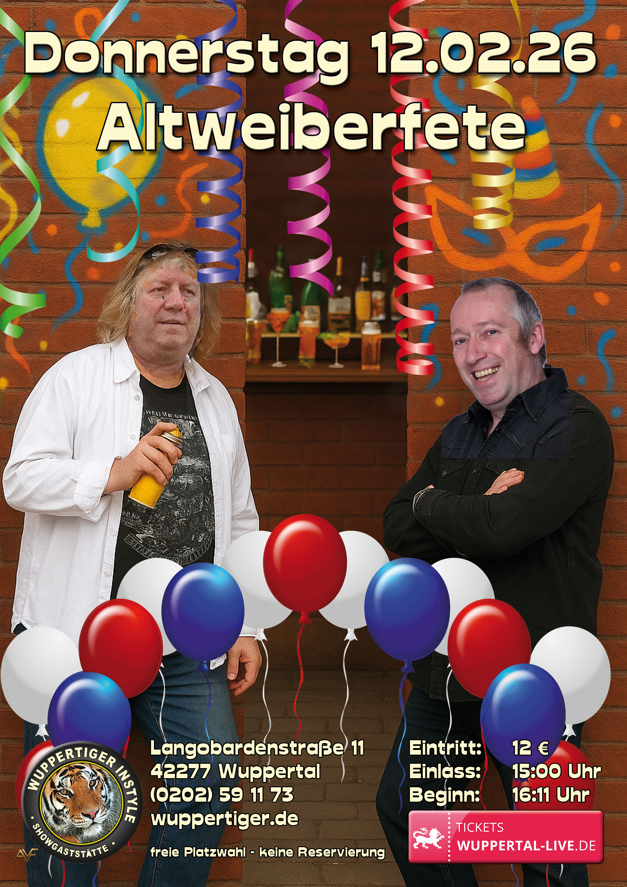 Domenico de Angel feat. Andrea TiAmo, Country Frank und Der Wuppertiger verabschieden mit Ihnen das alte Jahr. Mit musikalischen Hits und erlesenen Speisen feiern wir gemeinsam in das neue Jahr 2026. Ein Tipp: warten Sie nicht bis zum Schluss - in den letzten Jahren waren wir immer ausverkauft! |