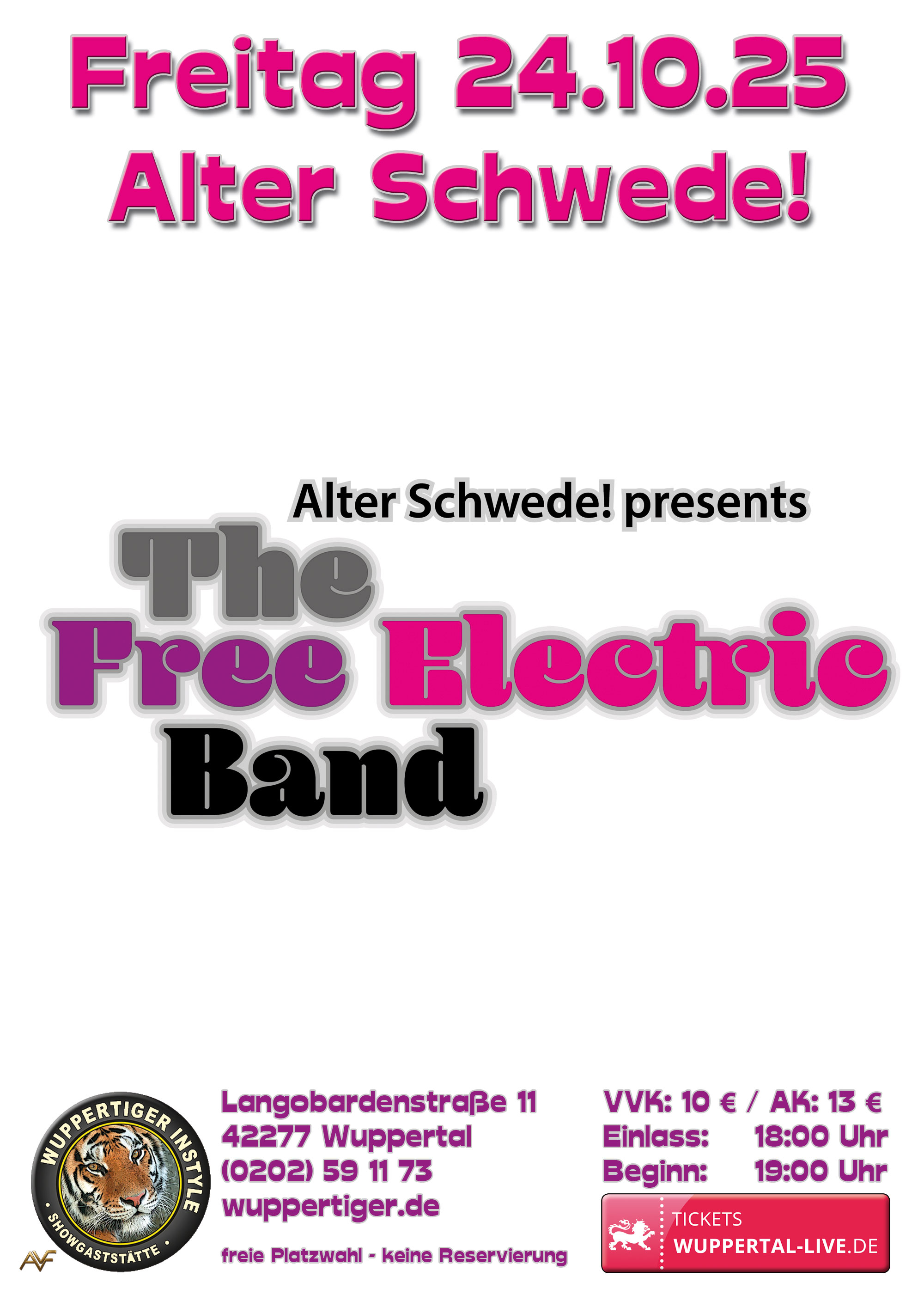 Alter Schwede! lassen die 70er wieder aufleben: Hammond, Glamrock, Disco, Gitarren & Protest! Musikalisch mit Neil Diamond, T. Rex, ABBA, Led Zeppelin etc., stylistisch mit Schlaghosen, Plateauschuhen, Glitzer und VoKuHiLa. |