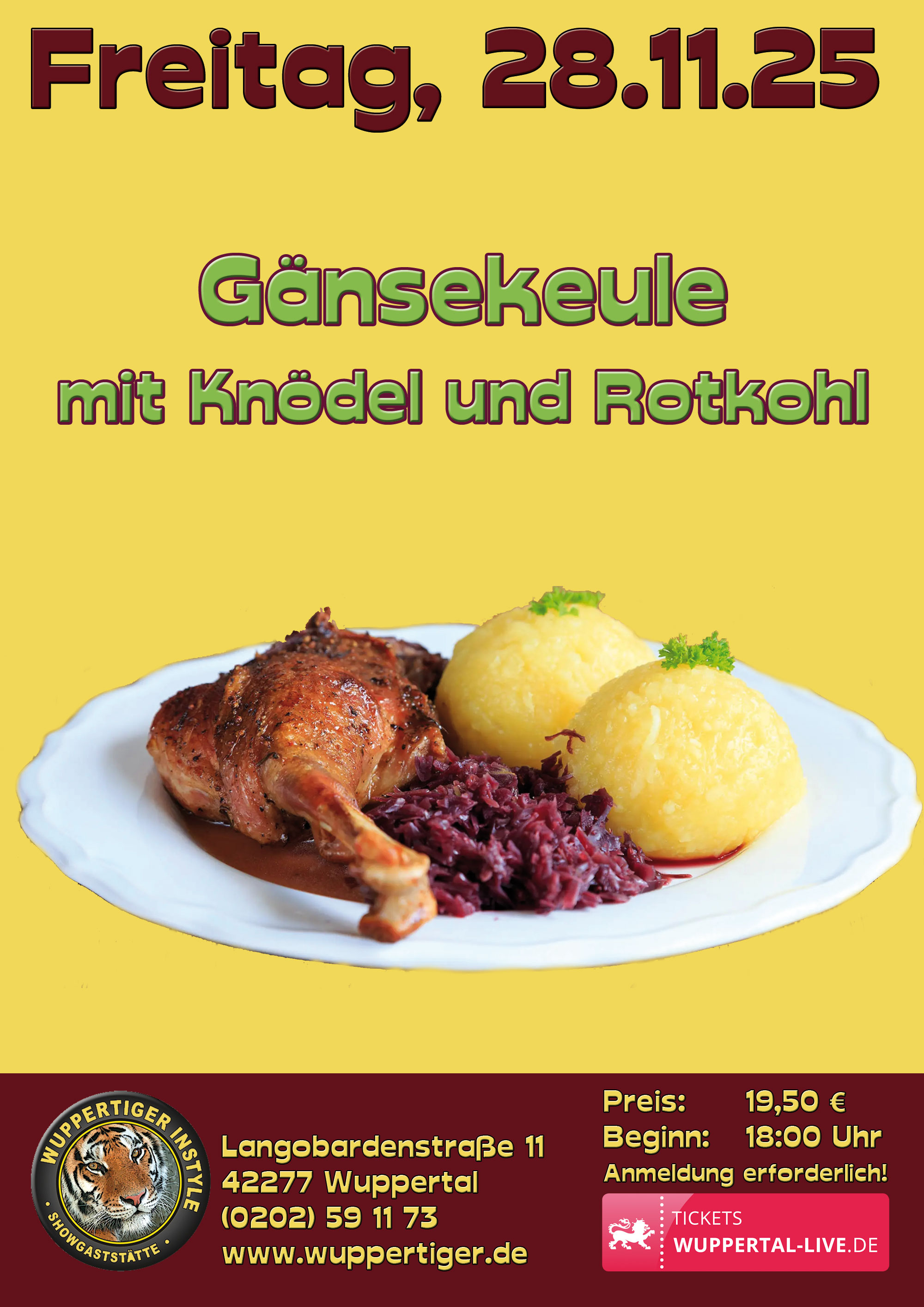 Es gibt wieder Gänsekeule mit Knödel und Rotkohl.