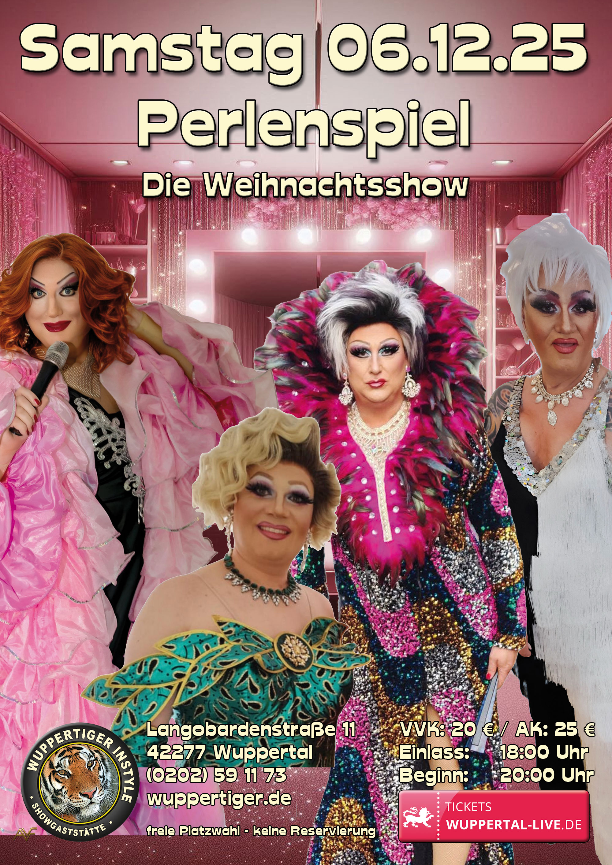 Perlenspiel zeigt uns "Perlen der Travestie". Gute Unterhaltung ist genau wie schillernde Kostüme und perfektes Make up garantiert.