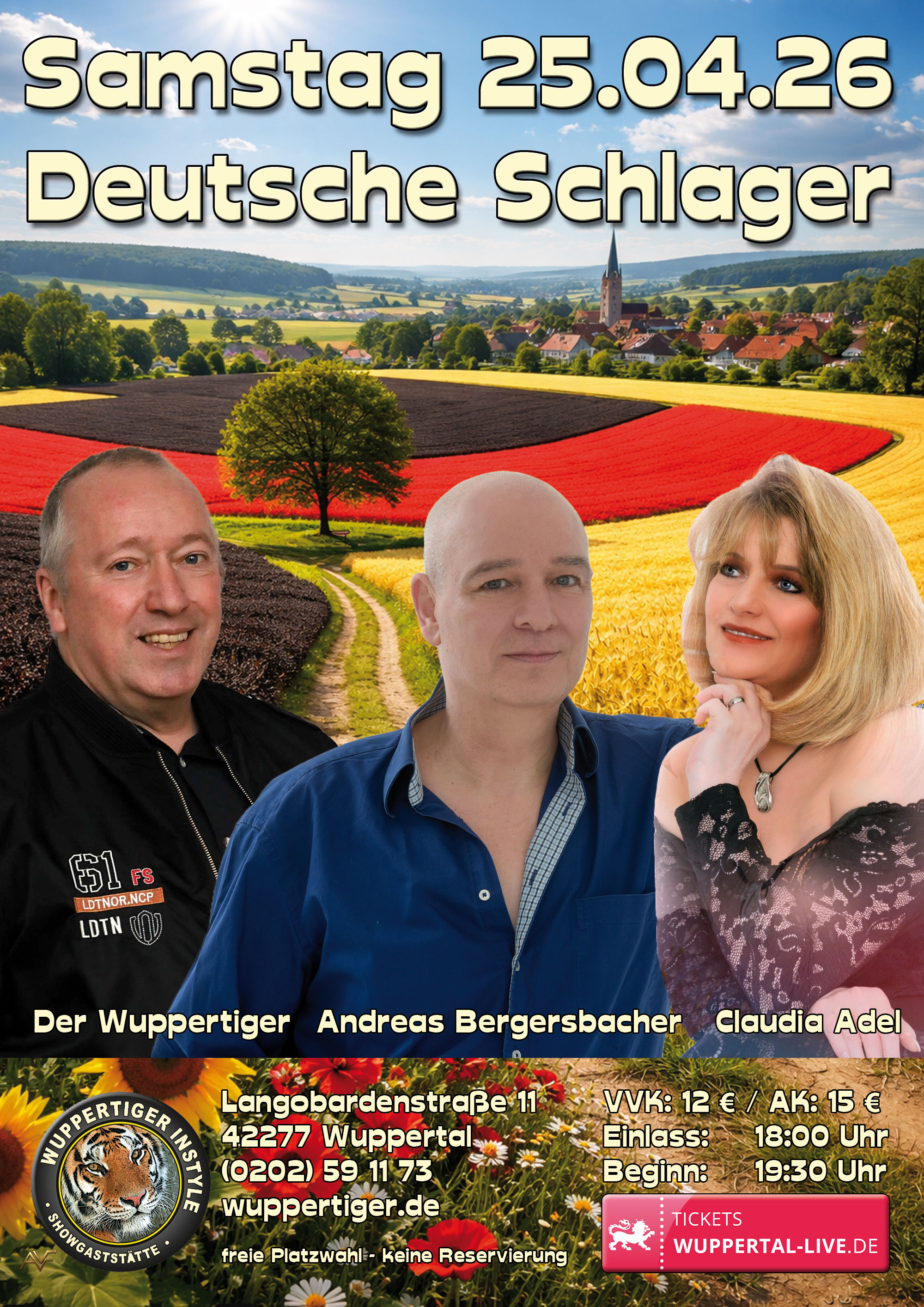 Claudia Adel, Andreas Bergersbacher und Der Wuppertiger gestalten einen abwechslungsreichen Abend ausschließlich mit deutschen Schlagern - den Songs, die in Oberbarmen am liebsten gehört werden! |