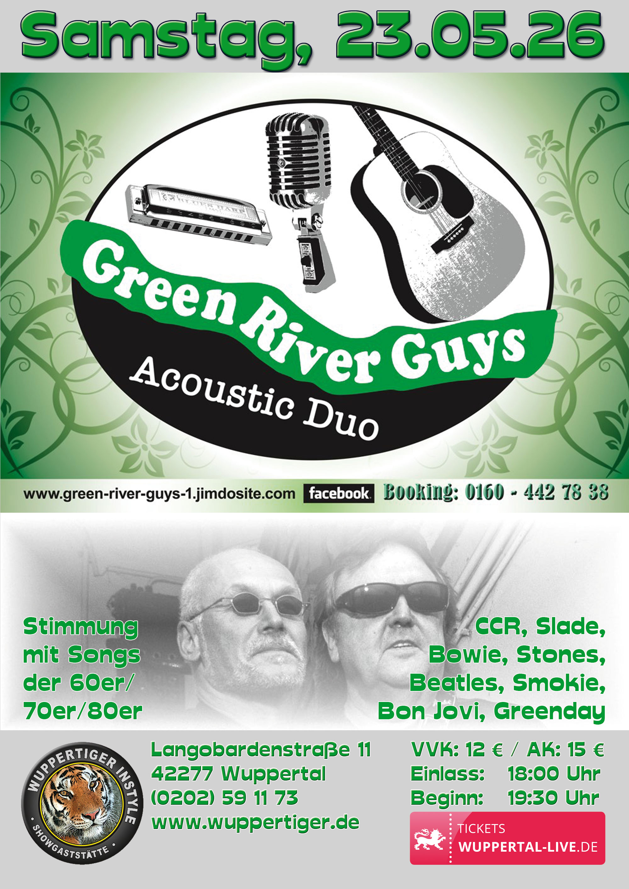 Die Green River Guys präsentieren Stimmung mit den Songs der 60er, 70er und 80er. Sie spielen Titel von CCR, Slade, Bowie, Stones, Beatles, Smokie, Bon Jovi, Greenday u.v.m.