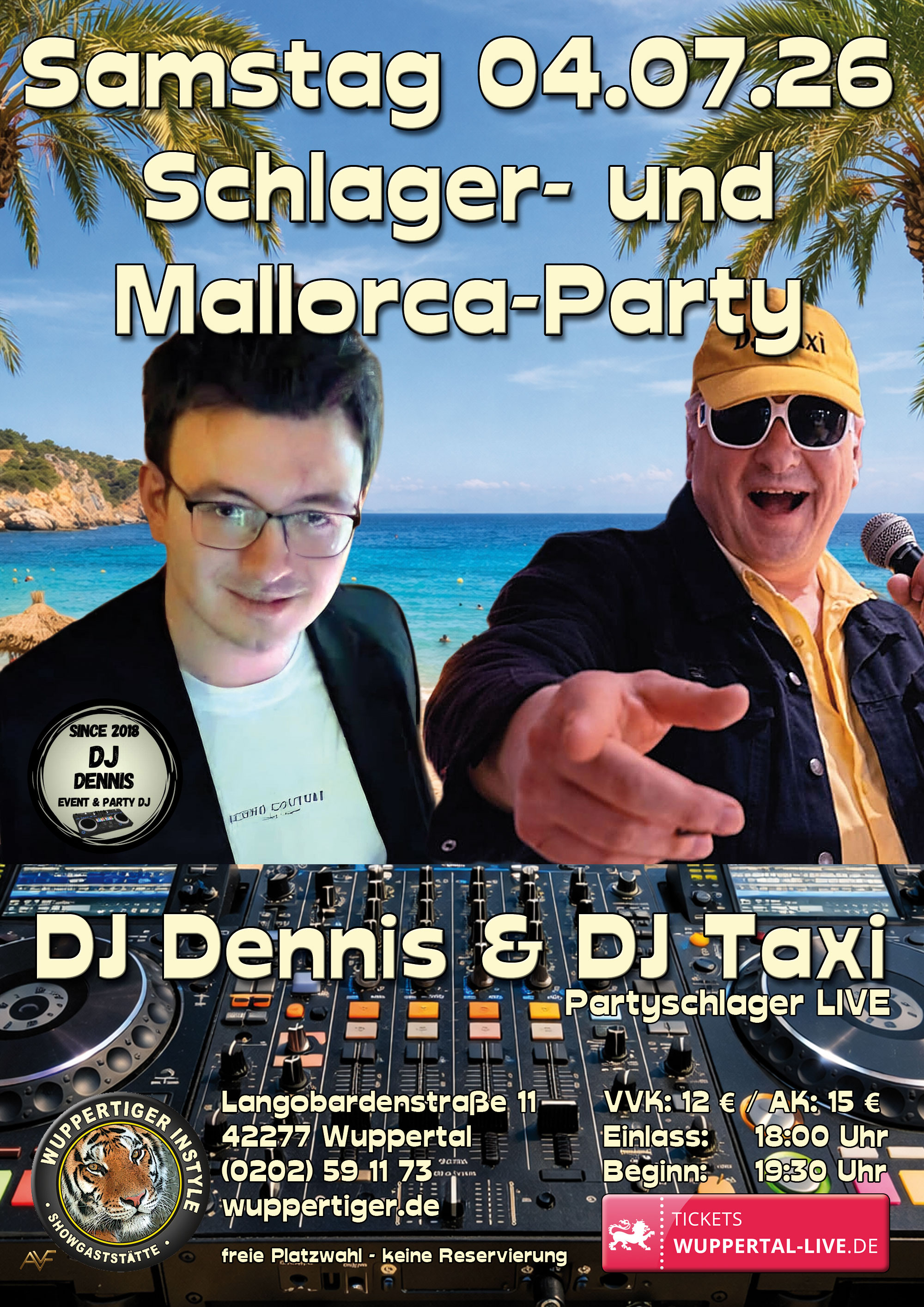 DJ Dennis und DJ Taxi lassen unseren Tanzboden erzittern! Beats und Bässe werden Sie auf die Tanzfläche bringen! Die beiden erfahrenen DJs kennen alle Hits die Fans von Mallorca-Partys hören wollen! |