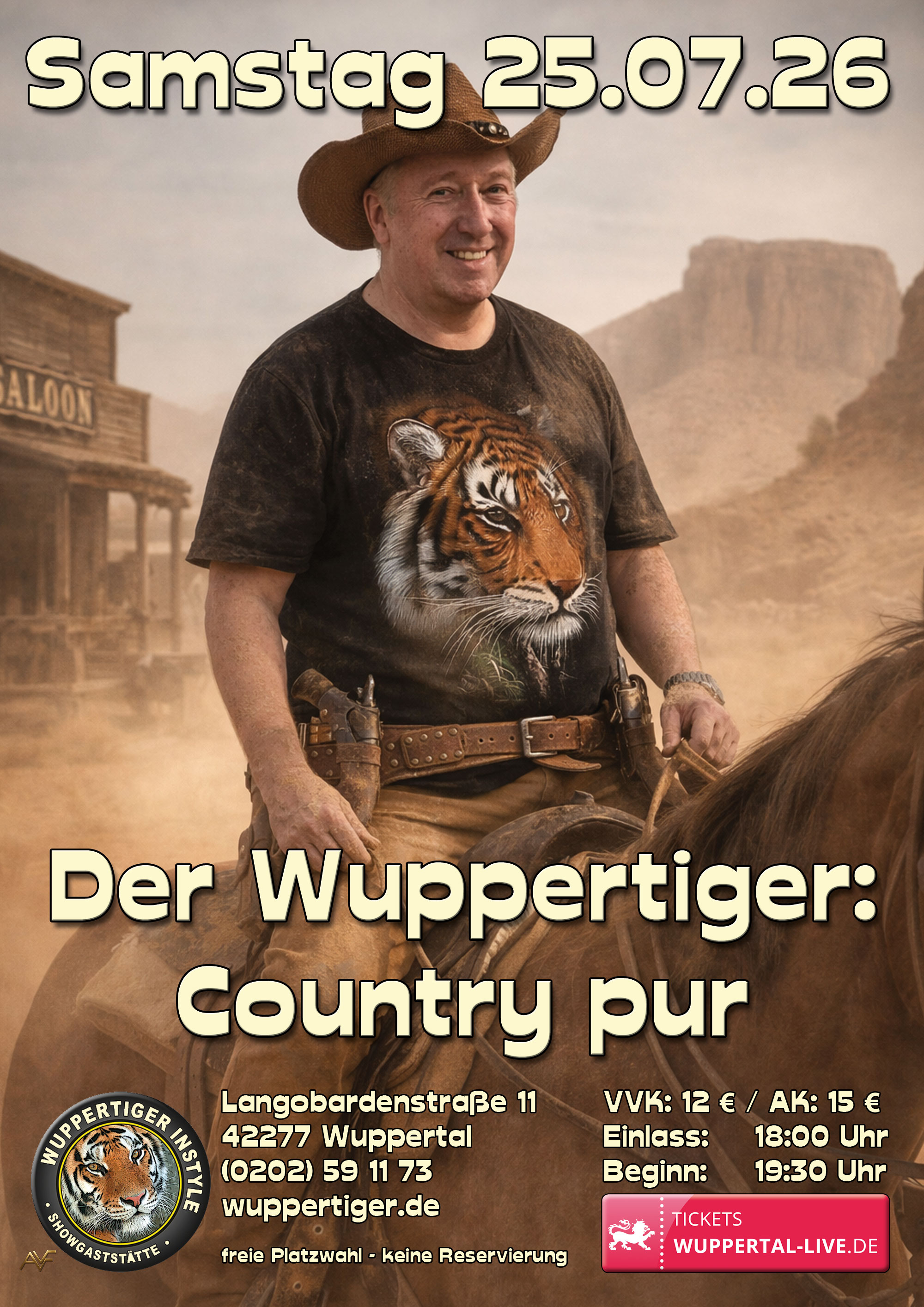 Der Wuppertiger hat in den letzten Jahren sein Country-Repertoire ständig erweitert. Heute stellt er die Hits dieser Songs - die überwiegend in deutscher Sprache vorgetragen werden - den Wuppertaler Countryfans vor. |